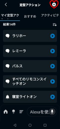 右上の「+」をタップして、新しい定型アクションを作成します。