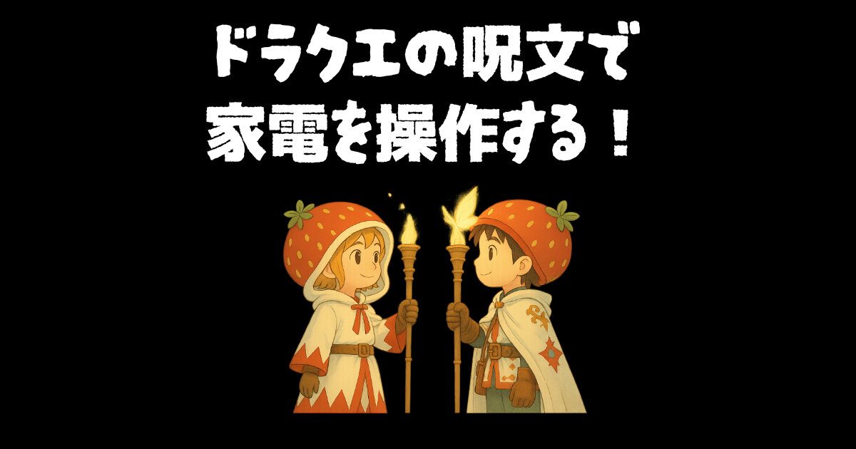 従来のイメージでは、アレクサ(Amazonのスマートホーム機器)で家電製品を操作するフレーズに「アレクサ、リビングの照明をつけて!」と丁寧に器具の名前を伝えていましたが、ドラクエの呪文で家電操作ができることを思いつきました。